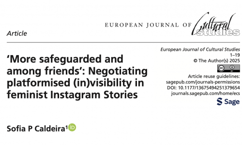 The article ‘More safeguarded and among friends’: Negotiating platformised (in)visibility in feminist Instagram Stories authored by Sofia P. Caldeira, has been published in the European Journal of Cultural Studies.